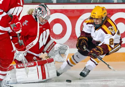 Junior Meghan Lorence (Mounds View, Minn.) tallied two points on a goal and an assist, and senior Sarah Davis (Paradise, N.L.), freshman Dani Cameranesi (Plymouth, Minn.) and junior Rachael Bona (Coon Rapids, Minn.) each added goals as all three of Minnesota's lines contributed to the scoring.