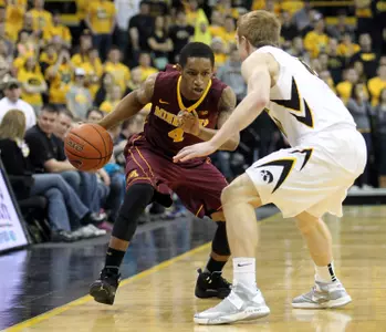 Austin Hollins had 13 for the Gophers, who came to Iowa City on a roll.