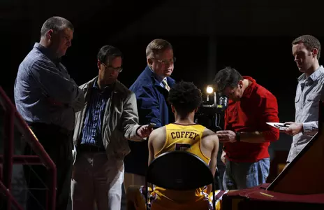 On Tuesday at Williams Arena, the Gopher men's basketball team held their annual media day. The Gophers posed for their annual team photo shoot, head coach Richard Pitino held a press conference, and the members of the Maroon and Gold met individually with members of the media.