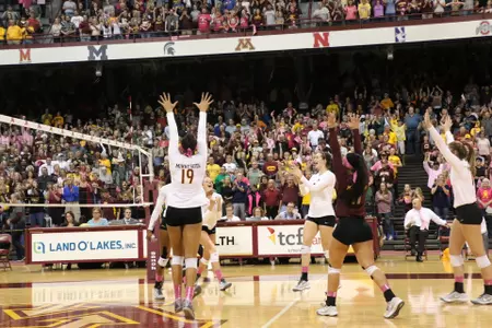 The No. 3 University of Minnesota volleyball team swept No. 10 Penn State on Saturday night, 25-17, 25-20, 25-18, in front of a sold out crowd of 5,391. Minnesota and Penn State split the season, each winning on its home court as they last met on Oct. 5 when Penn State won in five sets. Minnesota improves to 17-4 on the season and 9-3 in the Big Ten, and 8-0 at the Sports Pavilion.