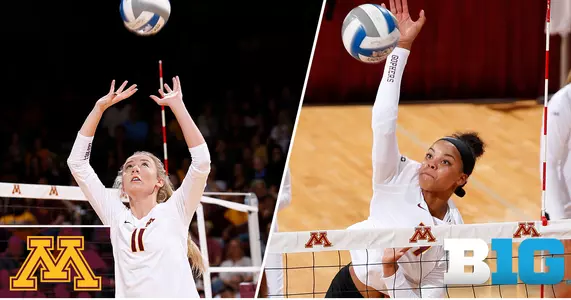 Sophomore setter Samantha Seliger-Swenson (Minnetonka, MInn.) and Alexis Hart (Independence, Mo.) have been named the Big Ten Conference's Setter and Rookie of the Week after their performances against league opponents last weekend. It's the fourth honor for Seliger-Swenson this season and the third for Hart. Minnesota swept Indiana and No. 14 Purdue last weekend to move to 4-0 on conference action.