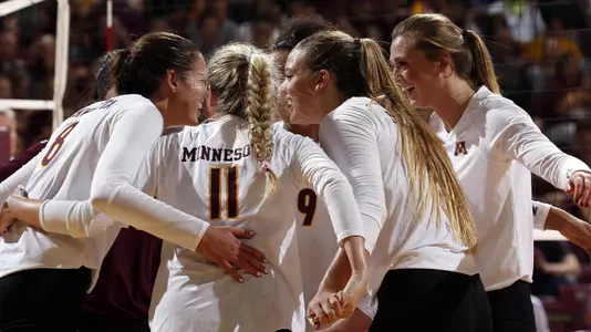 Set 5: The Gophers hit .375 to Penn State's .588 to fall 15-10 and lose the match. Both teams were neck and neck to open the final set, swapping leads until Penn State took a 10-7 lead, forcing a Minnesota timeout. The Gophers would take another timeout at 13-9, but Penn State would take the match.