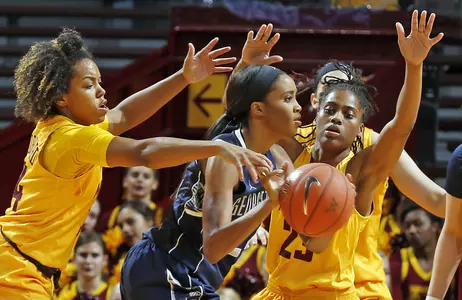 4 The Golden Gophers have had a different player post a double-double in each of their first three games. Freshman Taiye Bello scored 10 points and pulled down 12 rebounds in her debut against Harvard. At VCU Jessie Edwards tallied 12 points and 11 rebounds. Against Georgetown Kenisha Bell (10 points, 10 assists) had Minnesota's first points-assists double-double since Jan. 22, 2015.