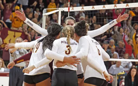 As a team, Minnesota put up 12 blocks to Michigan's seven, earning 72 kills and 77 digs. Sarah Wilhite earned a double-double with 26 career-high kills and 13 digs. Alexis Hart put up 14 kills, and Hannah Tapp had 11 with five blocks. Molly Lohman had nine kills with seven blocks, and Paige Tapp had five kills and blocks. Alyssa Goehner established 12 digs, while Katie Schau had 10 and Dalianliz Rosado had a match-high 24 digs. Samantha Seliger-Swenson put down a career high seven kills, with 55 assists and 13 digs.
