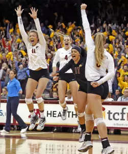 Minnesota improves to 24-4 overall, 16-3 in the Big Ten, and remains undefeated at home. Nebraska falls to 26-2 and 17-2, just its second loss this season. The Gopher win snapped a Husker 14-match win streak. It was also the first time Nebraska gave up a set in the last five matches.