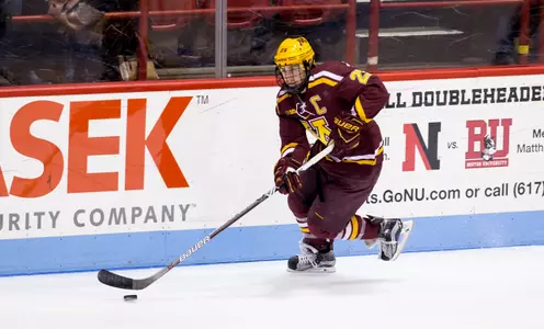 BOSTON (GopherSports.com) - Justin Kloos notched his second career hat trick, but it wasn't enough on Friday night as the Gophers fell to Northeastern 6-4 at Matthews Arena.