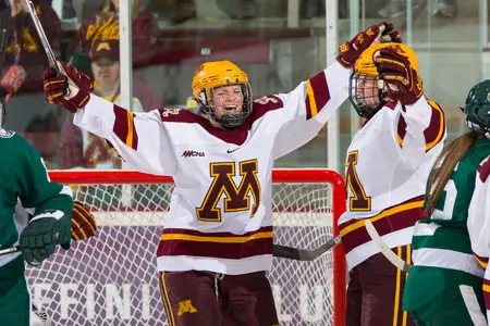 MINNEAPOLIS - Dani Cameranesi, Kelly Pannek, and Kate Schipper scored goals for the No. 2 Golden Gophers and Sidney Peters made 18 saves as the University of Minnesota women's hockey team blanked Bemidji State, 4-0, at Ridder Arena Saturday afternoon.