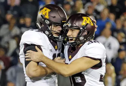 Earlier this year, Carpenter made four field goals at Penn State to become only the fifth Gopher to make four or more field goals on the road. Adam Bailey made five at Penn State in 1997, while Brent Berglund made four at Purdue in 1990. Jim Gallery made four on the road in consecutive weeks at Indiana and Iowa in 1981.