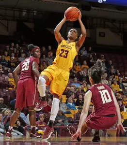 First Quarter: Bell led the Gophers with eight points in the first quarter, driving to the basket and scoring. Florida State got the bulk of its scoring inside, and from three Imani Wright 3-pointers. The Seminoles led 30-17 after the first period.