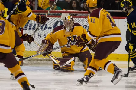 The two-goal lead held up behind Schierhorn's determination in net while the defense in front of him wasn't afraid of getting in front of opponents' shots either. The Gophers blocked 25 shots on the night compared to six by the Fighting Hawks.