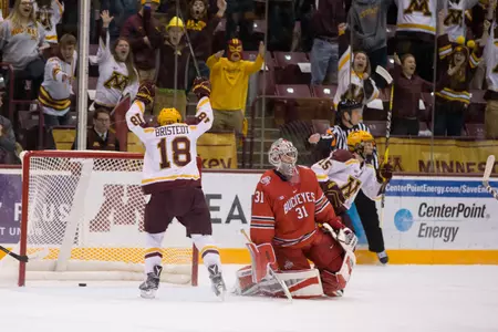The Big Ten rivals traded two-goal runs in the second starting with Bristedt's second of the night and 30th career goal on a Minnesota power play at 4:19. Tommy Novak and Steve Johnson earned assists on the goal. Sheehy added the eventual game-winning goal less than a minute later at 5:10 with assists from Justin Kloos and Pitlick - the first of two times on the night that the duo would set up Sheehy for a goal.