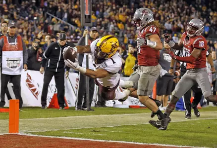 SAN DIEGO -- Shannon Brooks caught a tipped pass from Mitch Leidner for a 13-yard, go-ahead touchdown in the third quarter and the Minnesota Golden Gophers upset Luke Falk and the Washington State Cougars 17-12 in the Holiday Bowl on Tuesday night.