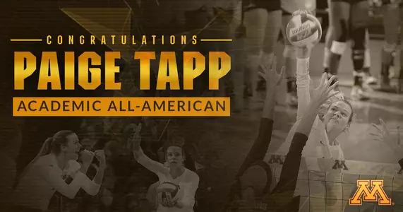 Senior middle blocker Paige Tapp (Stewartville, Minn.) has been named a First Team Academic All-American, announced today by the College Sports Information Directors of America (CoSIDA). It marks the second-straight season Tapp has garnered Academic All-America honors after she was named Second Team All-America as a junior.