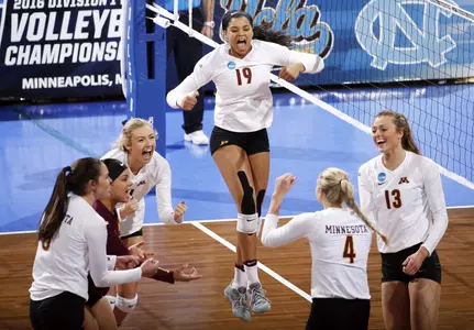 As a team, Minnesota had 67 kills, hitting .351 and adding 71 digs. Sarah Wilhite had 16 kills on the match, with four digs and two aces. Hannah and Paige Tapp both had 14 kills putting up a combined six blocks, while Molly Lohman had 11 kills and Alexis Hart had ten. Dalianliz Rosado had a team-high 15 digs, Katie Schau had 14, and Alyssa Goehner followed with 12. Samantha Seliger-Swenson put up another double-double with 52 assists and 10 digs.