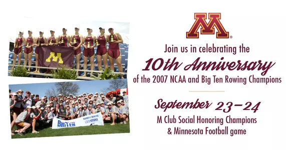 Join the Minnesota rowing program in celebrating the 10th anniversary of the 2007 NCAA and Big Ten Rowing Champions this September.