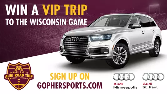 Fans are encouraged to enter online beginning today at www.gophersports.com/audi. As exclusive sponsor of the "Border Battle Road Trip," Audi Minneapolis and Audi St. Paul will equip the winning fan with a brand-new Audi Q7 to drive to Camp Randall Stadium. This grand-prize winner also will receive four tickets to watch the Gophers take on the Badgers in the Border Battle; a two-night hotel stay; a sideline visit at the game and a $250 Gold Country gift card. The entry period is open starting today and will close on Nov. 12, 2016. The Road Trip promotion will be supported through in-venue signage, radio and digital elements.