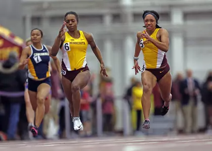 The 60-meter hurdles race proved exciting for the Gophers once again. Golding defended her title from a year ago in a meet record 8.20 seconds, her best time of the year and just 0.02 off her Minnesota program record (8.18). The Gophers took the top three places as Emma Spagnola was second in 8.35 seconds, and Rachel Schow came in third in a career-best time of 8.64 seconds to move into fourth on Minnesota's all-time list.