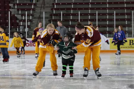 The annual event gives fans have the opportunity to take the ice with the back-to-back defending national champion Gophers. Children in eighth grade and under are invited to skate with the team after the game.