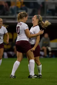 Molly Fiedler scored the first goal of the game for the Gophers. Her first career goal came perfectly off the crossbar and past the goal line to give Minnesota the early lead. Her goal came off impressive passes from Nikki Albrecht and Julianna Gernes.