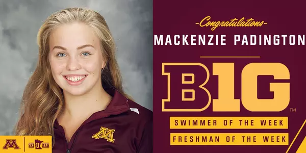 ROSEMONT, Ill. - It only took one meet for freshman Mackenzie Padington to be recognized on a conference wide level. Following impressive performances in the Gophers victory over Florida State, Padington earned Big Ten Women's Swimmer and Freshman of the Week, as announced by the Big Ten Conference office Wednesday afternoon.