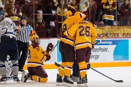 Casey Mittelstadt and Sam Rossini joined McManus as freshmen goal scorers while Brent Gates Jr. picked up the remaining goal to represent the Maroon & Gold upperclassmen. McManus and Tommy Novak, who notched his second career three-point night with three assists, led the way as 11 Gophers tallied points in the game while Eric Schierhorn picked up the win in his 79th-straight start for Minnesota, setting a new program record.