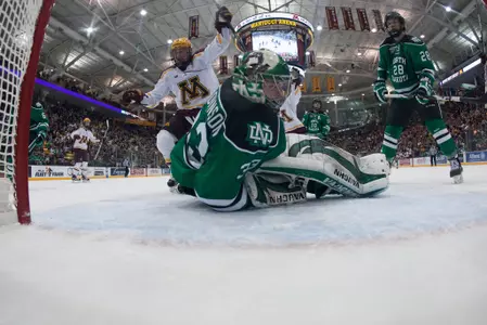 The Gophers hold a 147-130-16 all-time record against the Fighting Hawks and will be making their first trip to Grand Forks since the 2011-12 season. The two teams met last year in Minneapolis with the Maroon & Gold rallying five times in a 5-5 overtime tie to start the series before shutting out the visitors 2-0 in the finale. Tommy Novak is Minnesota's active leading scorer against the Fighting Hawks with four points (two goals, two assists) in two games while Eric Schierhorn is 1-0-1 against this weekend's opponent.