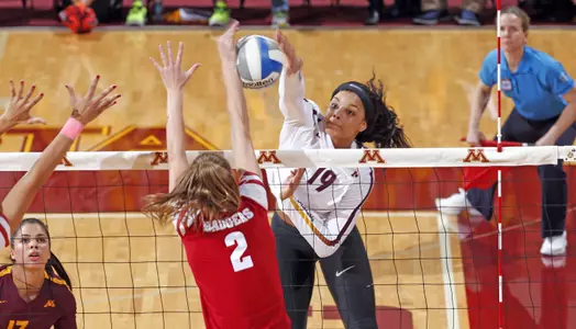 Minnesota hit .240 to Wisconsin's .189. Both teams had 10 blocks, while Wisconsin held a one-dig advantage at 74-73. Alexis Hart had a match-best 23 kills and hit .367, while she added one ace, three digs and a block. Stephanie Samedy had 11 kills, followed by Jasmyn Martin with 10. Molly Lohman had a team-best six blocks. Samedy added the double-double with a career-best 20 digs, followed by Dalianliz Rosado had 18. Samantha Seliger-Swenson posted 50 assists, three kills, an ace, eight digs and two blocks.
