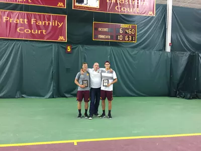 Spec and Corwin rolled in their semifinal earlier Sunday, knocking off Adrian Oetzbach and Jochan Bertsch of Oklahoma, 6-3, 6-4 before needing a tiebreaker to claim the doubles title. The duo knocked off Artur Dubinski and Lefty Theodorou of Oklahoma State 6-4, 4-6 (10-6) to claim the title in front of an excited crowd of Gopher Men's Tennis fans and teammates.