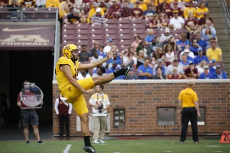 Going into his junior season in 2016 Santoso made the switch over to punter where his big boot continued to impress. He has punted 110 times in his career and averages 42.0 yards, which ranks fourth in school history. Santoso has placed 39 punts inside the 20 and his career long of 68 yards came against Michigan State this year. He is currently first in the Big Ten (14th in NCAA) with a 45.0 average on 32 punts. The Minnesota record for a senior is 43.4 yards per punt and was set by Santoso's predecessor Peter Mortell.