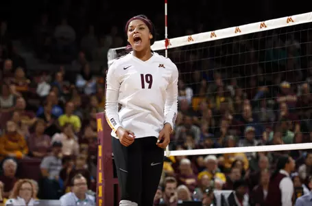 As a team, Minnesota hit .518, which marked a season best. The Gophers also bettered a season-best in aces with 10. The Gophers produced 50 kills, committed just six errors in 85 swings.