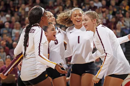 Stephanie Samedy and Alexis Hart led the Gophers with 14 kills each, while Samedy hit a team best .667. Hart hit .407, while Maddie Beal had four kills in four attempts. Regan Pittman hit .444 with six kills in nine total attempts and led the team with three blocks. Samantha Seliger-Swenson tallied 37 assists and had two service aces, while Dalianliz Rosado posted 13 digs.