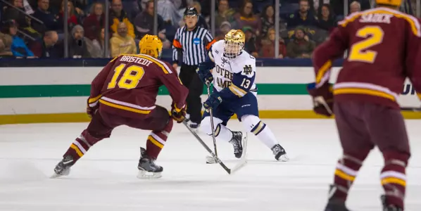SOUTH BEND, IND. - A battle between Top-10 ranked Big Ten rivals came down to a fluky power-play goal as No. 4 Notre Dame took a 1-0 contest over the No. 6 Gopher Hockey program on Friday night at Compton Family Ice Arena.