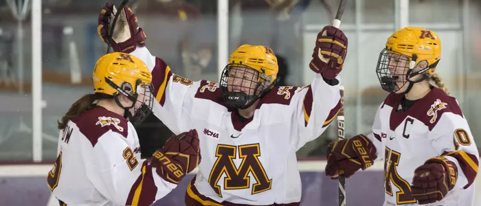 Minnesota (14-4-1, 9-3-1-0 WCHA) also received goals from Caitlin Reilly and Emily Brown in the win. Zumwinkle and Reilly both posted two points with one goal and one assist each, and Sidney Peters made 24 saves, including four in overtime, in her eighth win of the season (8-3-0).