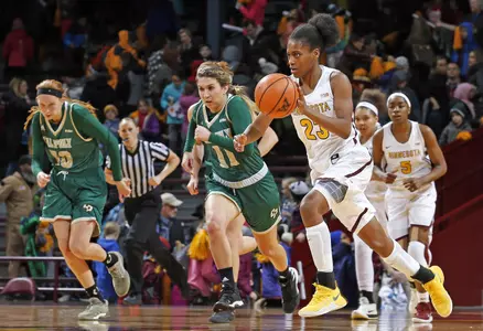 Second quarter: The Gophers came out attacking in the second quarter. They forced a first possession turnover and went on a roll from there. Pitts connected four times from behind the arc and Wagner hit a pair of threes on her way to a 10-point quarter. The Maroon and Gold scored 31 second quarter points and pushed their lead to 10 at the half.