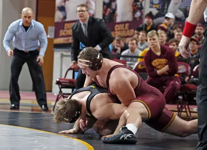 The match began at 197 pounds, allowing the Gophers' two senior captains to kick off a day where they, along with four fellow seniors, would be honored for their Minnesota careers. Neither disappointed the home crowd, picking up equally impressive - but very different - victories.