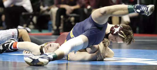 After handling Austin Myers (Missouri), 6-0, in the opening round, heavyweight Michael Kroells found himself in a battle with Denzel Dejournette (Appalachian State). Neither was able to earn a takedown during regulation, both scoring their lone point off escapes. The match continued through sudden victory overtime, a set of tiebreakers and another sudden victory overtime before it was decided on the bout's first takedown - nearly 11 minutes into the marathon match. Kroells scored the points off a go-behind, something he had attempted and narrowly missed on scoring several times during the contest, to seal the 5-3 win.