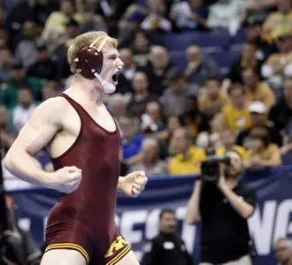 Coming off a strong showing in the early session of the NCAA Championships on Friday, four Gophers clinched spots on the podium, ensuring All-America seasons for each. Returning All-American Brett Pfarr at 197 pounds and first-time All-American Ethan Lizak at 125 led the way by advancing to tomorrow's championship bouts. Rounding out the foursome was another pairing of a returning All-American and a first-timer, heavyweight Michael Kroells and 141-pounder Tommy Thorn, respectively.