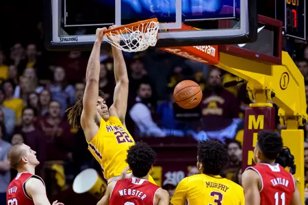 Murphy finished with 20 points and 11 rebounds and Reggie Lynch had 11 points, six blocks and six rebounds as the Gophers (11-6, 23-7) overpowered the Huskers (12-17, 6-11) around and underneath the basket. Coach Tim Miles was weary enough of the interior imbalance that he switched to a 1-3-1 zone for a period early in the second half, and the Gophers promptly made three 3-pointers in less than 3 minutes.