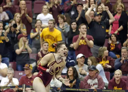 The Gophers swept the podium at last Sunday's Best of Minnesota meet with Winona, Hamline and Gustavus. Junior Ciara Gardner won event titles on beam and all-around, scoring the lone 9.900 of the competition on beam, which was a personal record. Rookie Paige Williams earned gold on vault, Bailie Holst topped uneven bars and Bailey Abernathy had the highest score on floor. Minnesota's team total was a 194.700.