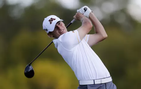 Riley Johnson moved into a tie for fifth at the Valspar Collegiate Invitational on Monday. The Golden Gophers moved up two places to 11th through 36 holes at the Floridian. They dropped 16 strokes off their Round 1 score and are 24 over for the tournament.