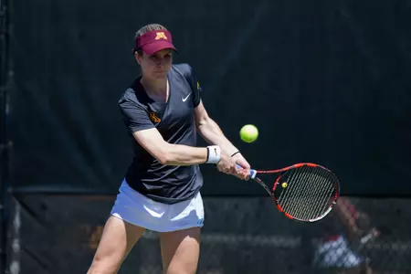 The day started off with a Minnesota victory in the No. 1 doubles spot. Caitlyn Merzbacher teamed up with Mehvish Safdar to defeat Kristina Hovsepyan and Alexandra Stanova 6-3. This was the duo's 11th win overall and their eighth victory in dual matches.