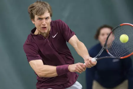 The first singles match of the night to finish featured two nationally ranked student-athletes. No. 80 Spec took on No. 92 Malik in the No. 1 spot with Malik coming out victorious 6-2, 6-0.