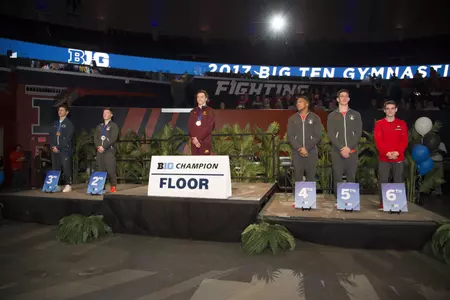 The University of Minnesota earned gold, silver and bronze during the individual event finals at the 2017 Big Ten Men's Gymnastics Championships on Saturday night at the State Farm Center. The effort was led by junior captain Alex Wittenberg, who was named the Big Ten Champion on floor exercise.