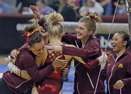 49.450: Minnesota scored a 49.450 on floor against Ohio State, which included all three seniors scoring a 9.900 or higher. The event score is tied for fifth in program history.