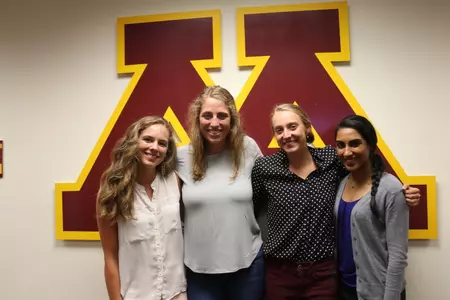 The University of Minnesota student-athlete development office has four interns working within Gopher Athletics to prepare for the upcoming 2017-18 academic year. Interning in the department is Mariah Hirstein (student at Minnesota Duluth), Maggie Werba (Gopher women's swimming), Mehvish Safdar (Gopher women's tennis) and Jenna Conzemius (Gopher women's track). Learn about what each of them are working on this summer, how it's preparing the student-athlete development office for the year and what they've already learned in just their first month on the job.