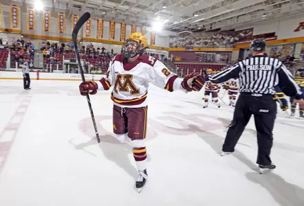 The Gophers continue their weekend series against Merrimack with a 2:07 p.m. puck drop Sunday at Ridder Arena.