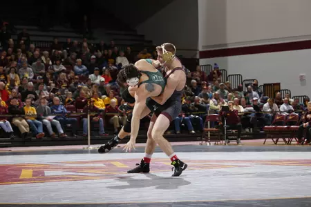 Wanzek, a senior from Inver Grove Heights, Minn, continued to score in bunches on Sunday against Michigan State. Wanzek scored 15-points in his 15-7 major decision on Sunday, marking his fifth time in his last six matches he has majored his opponent. During the six match winning streak Wanzek has averaged 14.3 points per match, which includes a 22-7 tech fall while at the South Beach Duals.