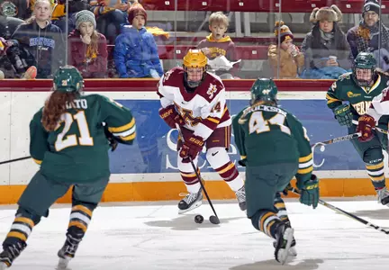 MINNEAPOLIS - The No. 5 University of Minnesota women's hockey team scored six unanswered goals to cruise to a 6-1 win over visiting Vermont in game two of this weekend's non-conference series at Ridder Arena Saturday evening.