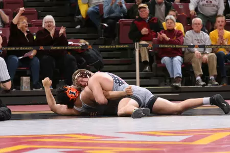 Minnesota would trail by as much as 9-2 through the first three matches, but a Rylee Streifel comeback victory in the heavyweight match swung the momentum back to the Gophers who won four of the next five matches.