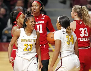 MINNEAPOLIS - The Minnesota women's basketball team continued its series dominance over Border Battle rival Wisconsin Thursday night with a 90-65 win at Williams Arena. It was the 10th straight win in the series for the Golden Gophers, their longest such streak in program history.